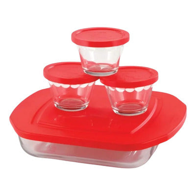 Refractario Cuadrado Con 3 Flaneras Con Tapa Vidrio Pirorey