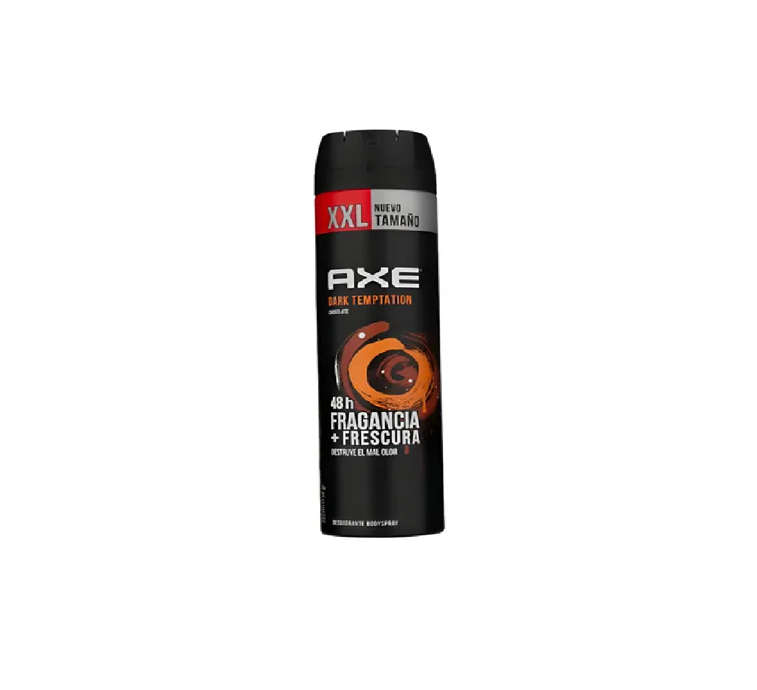 Desodorante Axe Dark Tempt con fórmula antitranspirante que proporciona protección duradera contra el sudor y el olor durante todo el día. Su cautivadora fragancia de chocolate oscuro ofrece un aroma sofisticado y atractivo que te acompaña en cada momento. Presentación en spray de 250ml, ideal para uso diario. Fórmula efectiva que combina protección antiperspirante con una experiencia sensorial única. Perfecto para hombres que buscan confianza y frescura con un toque de elegancia.