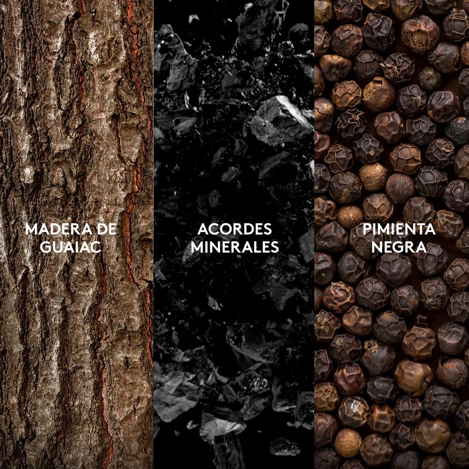 • Notas de fondo: Oakmoss, Tonka, pachuli, sándalo y madera de Guaiac, para una base cálida, terrosa y sofisticada.