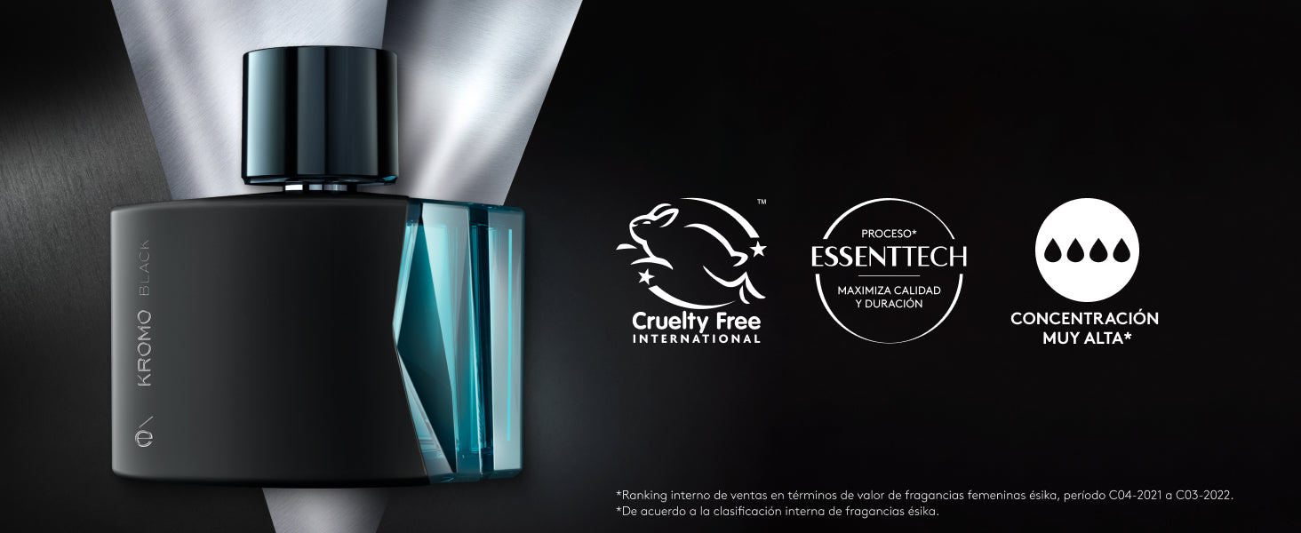 Kromo Black de Ésika es un perfume masculino oriental especiado creado para el hombre decidido y sofisticado que se reinventa constantemente para seguir avanzando.